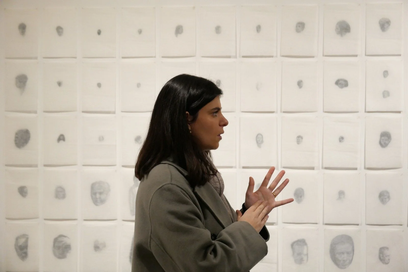 Her work explores social fragilities in contemporary society, creating spaces for critical thinking and contemplative experiences through painting, drawing, sculpture, and installation.