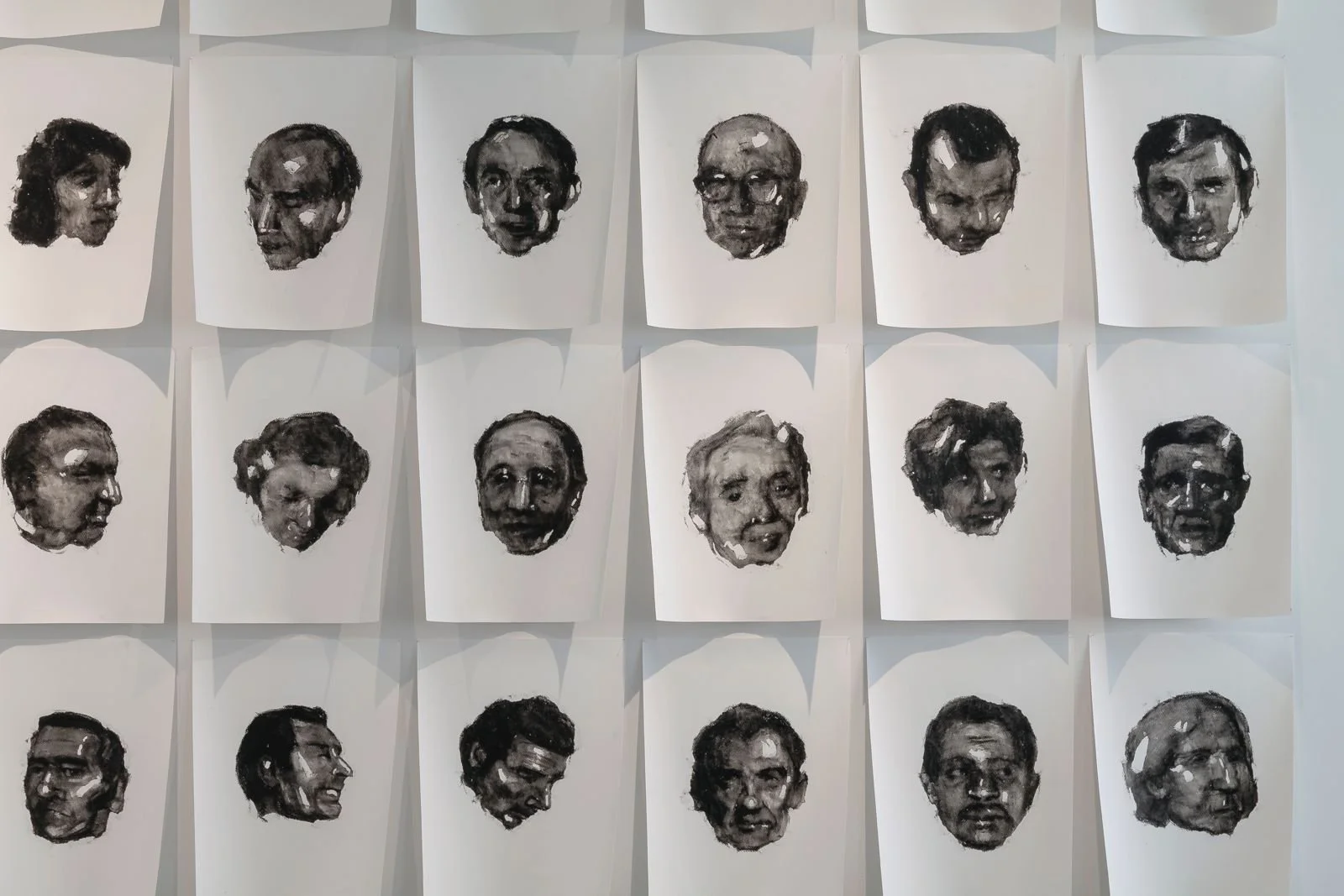 Através de materiais simples, fui dando forma aos rostos que poderiam ter pertencido a cada uma dessas pessoas. A minha imaginação e o material usado juntaram-se para responder à pergunta que me assolou. Mais do que retratos, revelavam-se invocações.